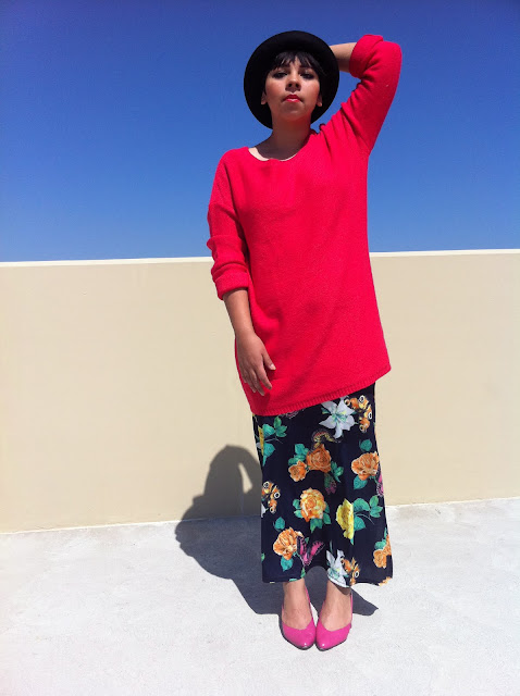 love your skirt, those colors are indeed bold and so lovely! Awesome red/pink sweater too.